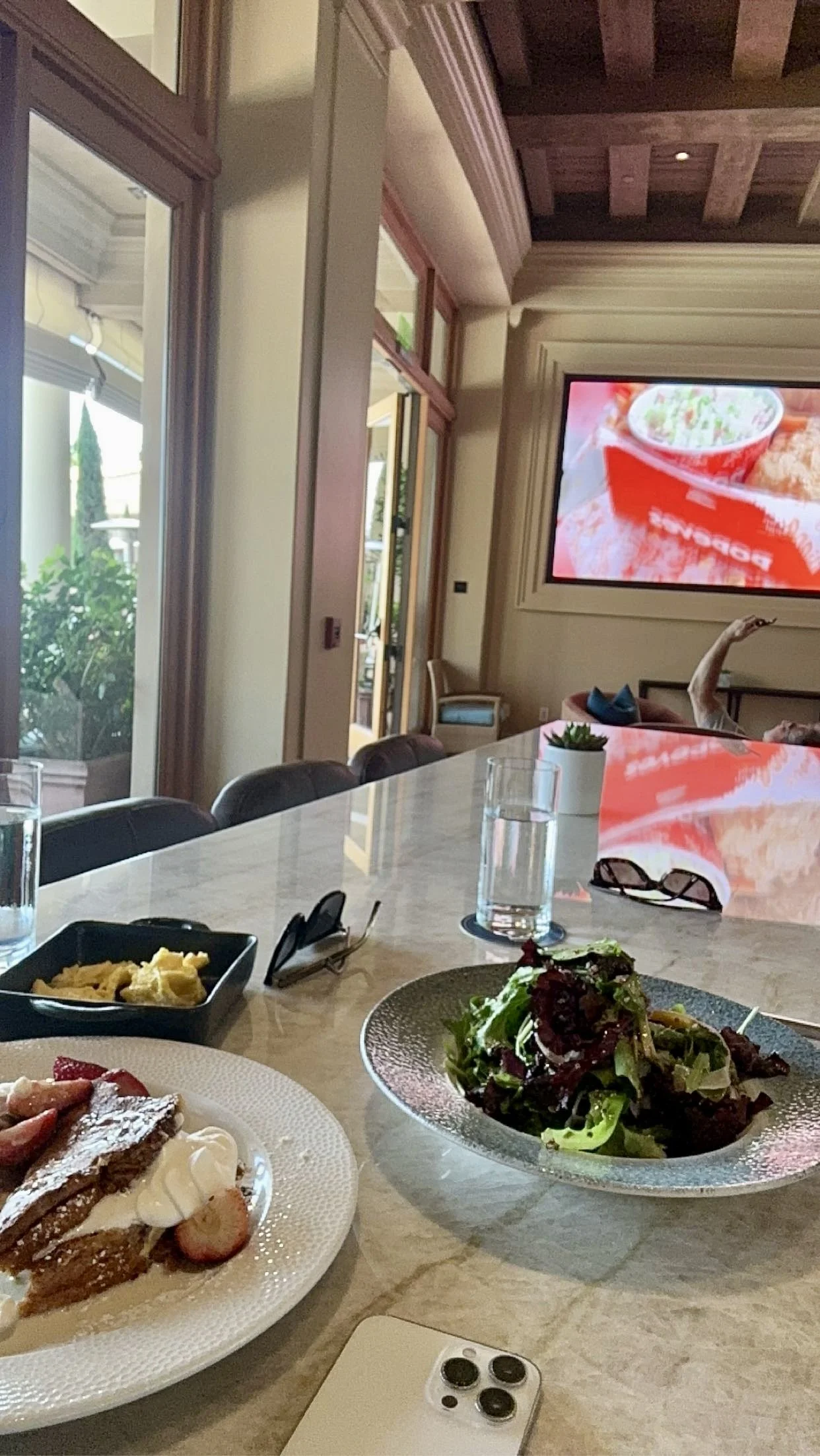 On this recent stay, we ordered breakfast to our room and enjoyed the chia yogurt bowl, a fruit smoothie, potatoes, French toast, and scrambled eggs. The chia yogurt bowl was refreshing, and the French toast was notably thick and served with maple syrup. While we typically prefer dining at the restaurants onsite, if you do opt for room service, just remember to plan a bit ahead if you have somewhere to be afterward.