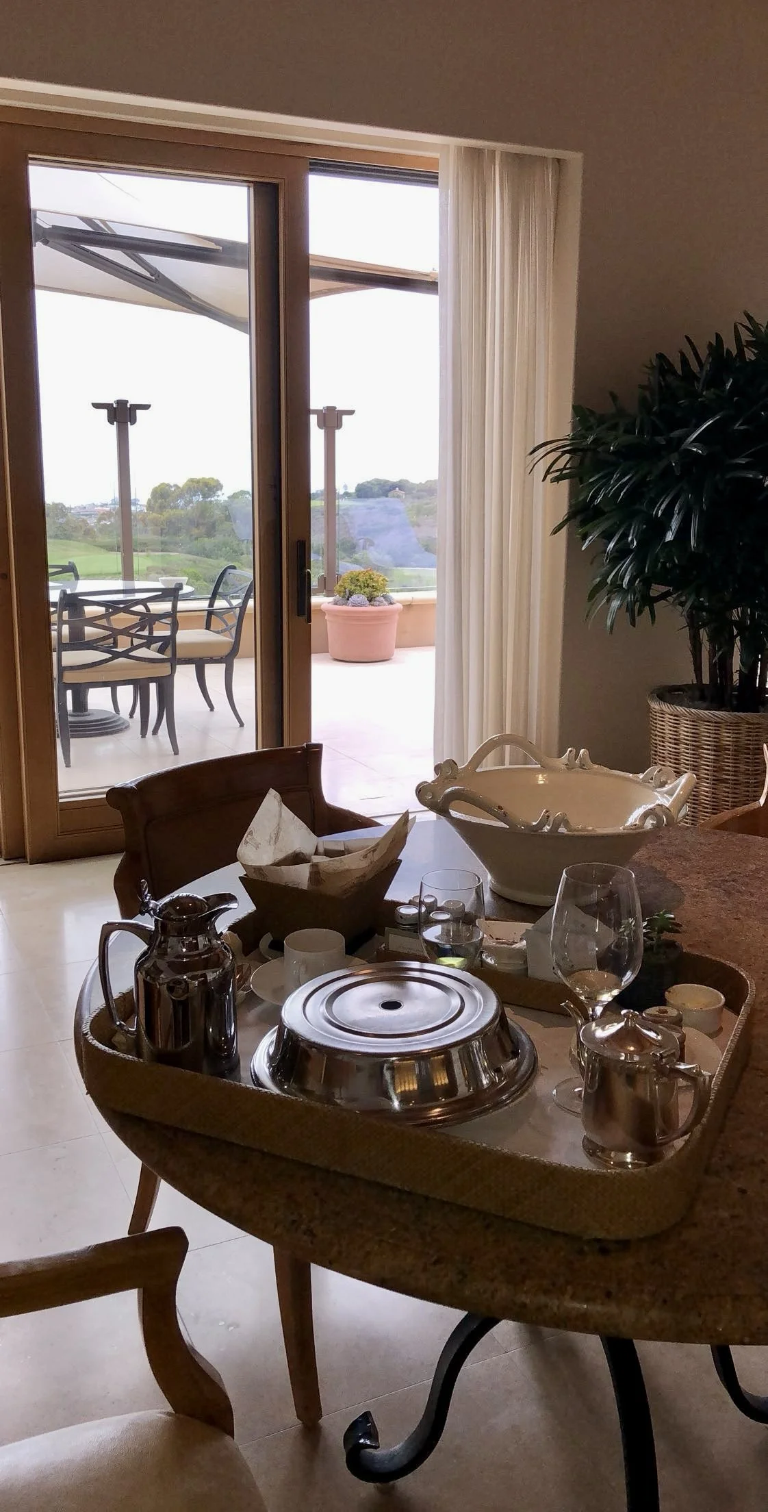 The in-room dining at Pelican Hill is generally good, but from my experience, it can take a while for the food to reach your room. I suspect this is due to the resort's expansive layout, as kitchens are located further away compared to typical hotels where staff simply hop on an elevator to deliver.